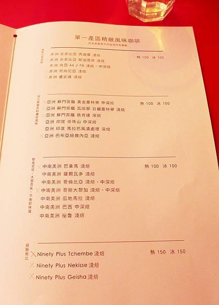 菜單頗簡潔,三頁中有兩頁是咖啡,