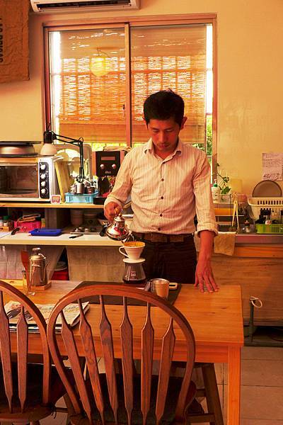 而站在吧台煮咖啡的男子便是老闆,