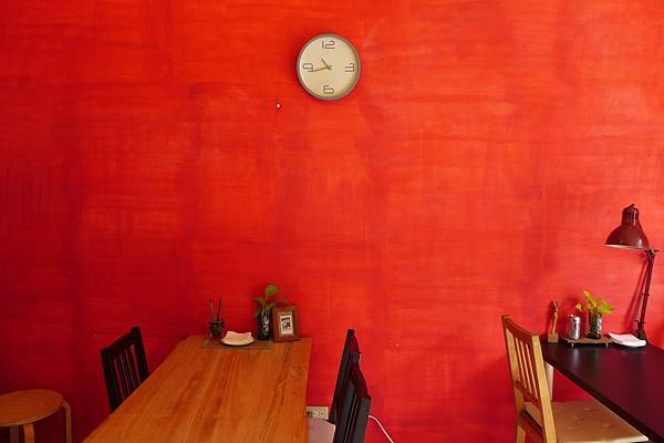 入口右側是一面大紅色的牆,