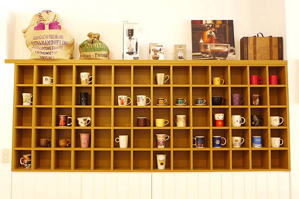這面咖啡杯牆很引人注目,據說可以寄杯,