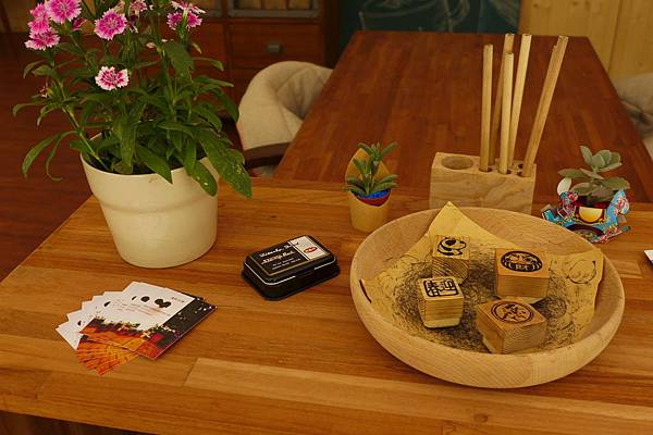 入口處的櫃子擺著一些藝文活動資料以及印章,